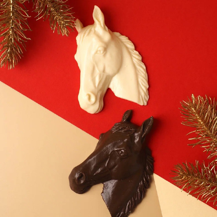 Идеальным вариантом станут премиальные шоколадные скульптуры лошади – это настоящее произведение искусства, которое можно разместить как украшение интерьера, а затем разделить за праздничным столом.