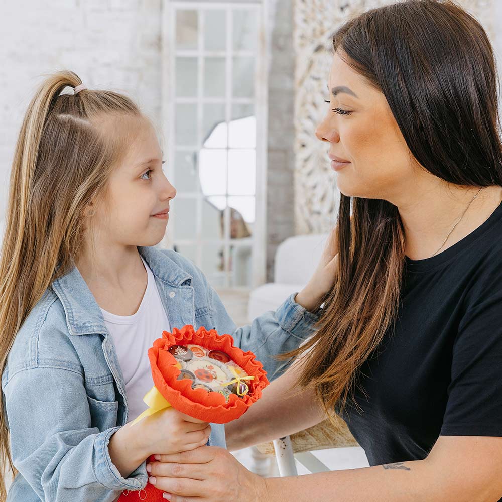 Милая божья коровка, украшающая центр этого сладкого букета, так и просится поиграть с ней! Однако, сюрприз в том, что это - не игрушки, а сладости, что, в общем-то, даже интереснее: дети любят все необычное. Да и к началу учебного года такой букет от фабрики "Конфаэль" станет отличным подарком как для тех, кто отправляется в детский сад, так и для тех, кто впервые пошел в школу.