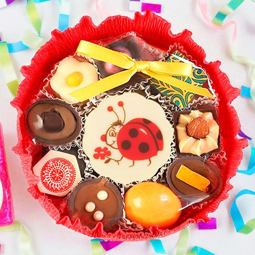Конфета из белого шоколада с декором Божья коровка со сливочно-миндальной начинкой