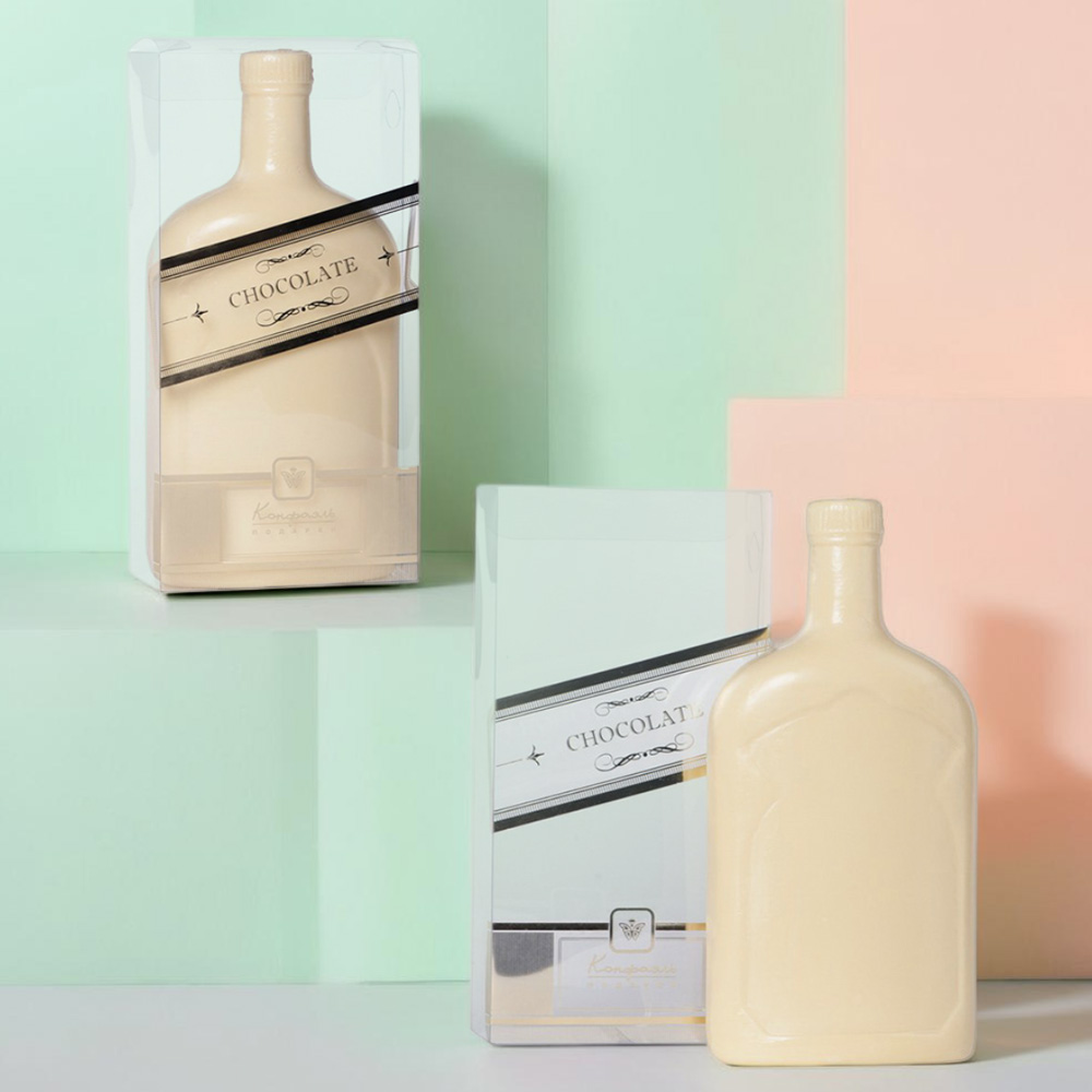 Бутылка из белого шоколада— поистине превосходный подарок для джентльменов, знающих толк в изысканных угощениях.