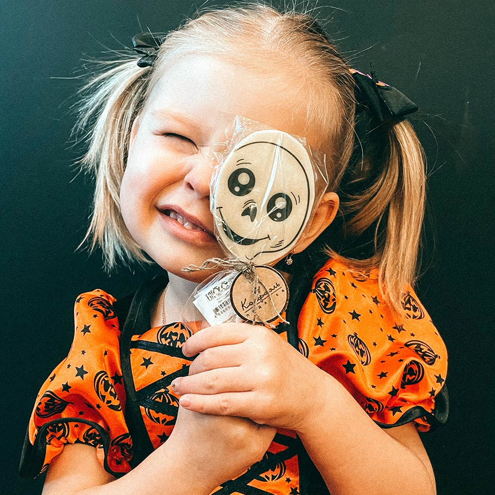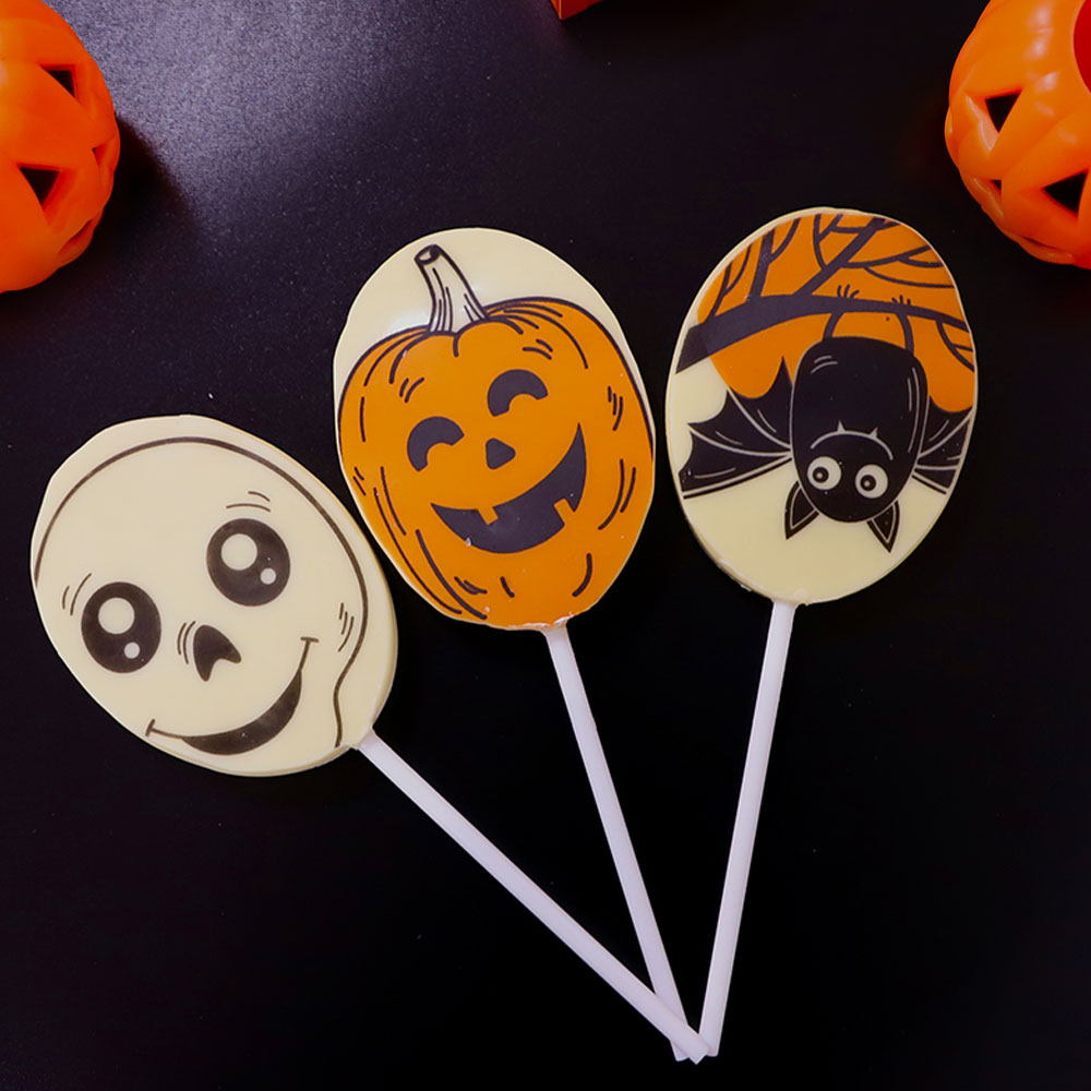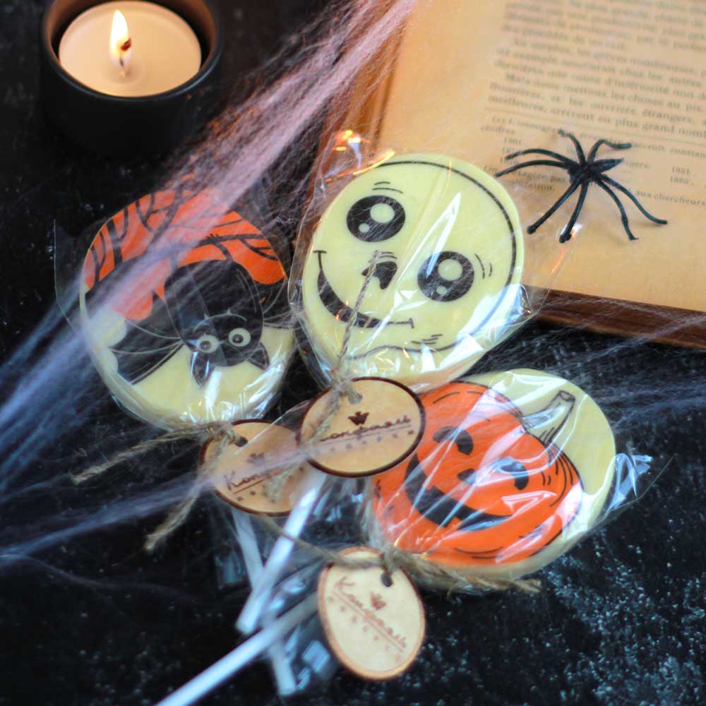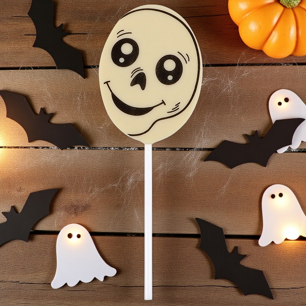 Угощение или жизнь? Так обычно выпрашивают сладости на Хэллоуин Конечно же угощение! Этот очаровательный леденец из белого шоколада обязательно понравится Вашему ребенку! Скоротайте осенний вечер за поеданием сладостей от Конфаэль!