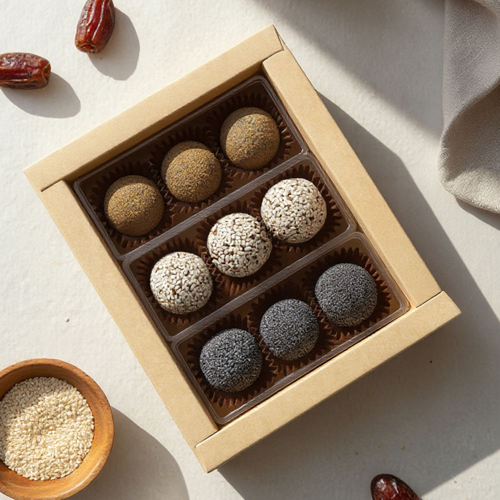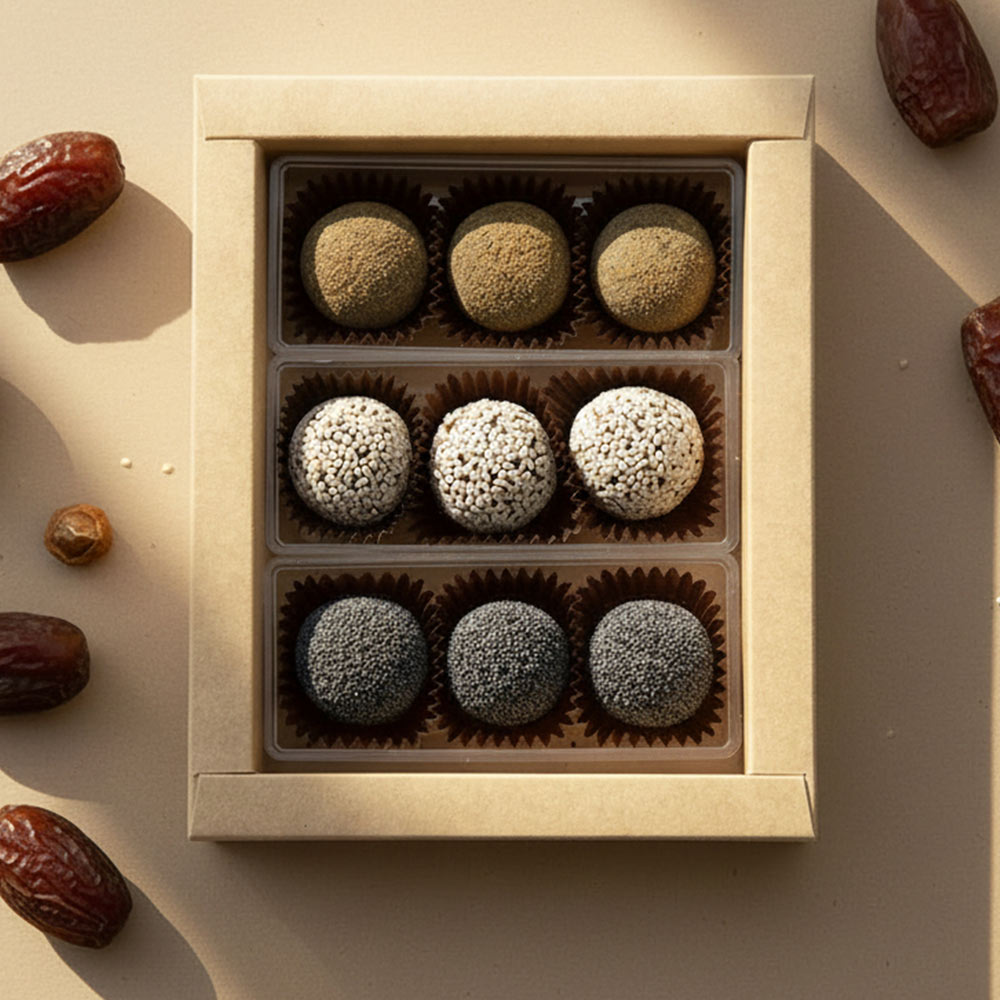 Финиковый трюфель кофе с цедрой апельсина, Кунжут, Мак 150г