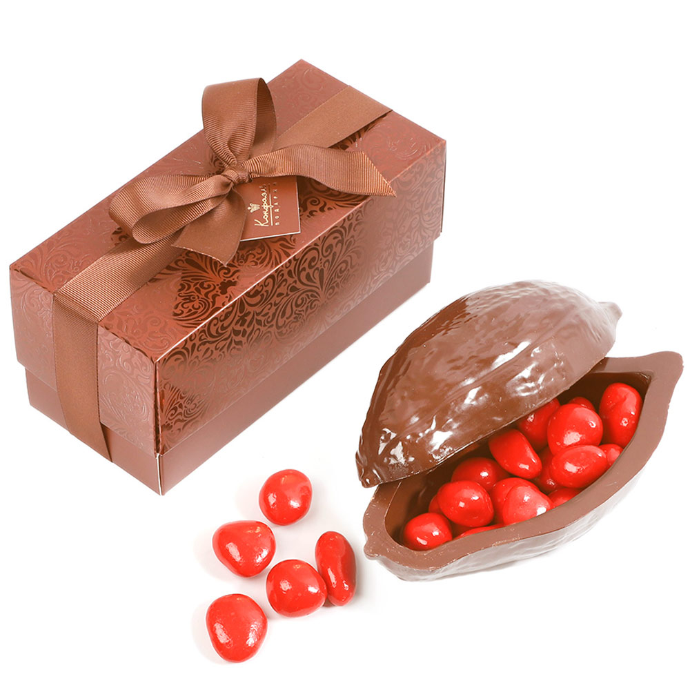 Шоколадный какао-боб — прекрасный сувенир в элегантной упаковке, которую по достоинству оценят только истинные ценители эстетики.
