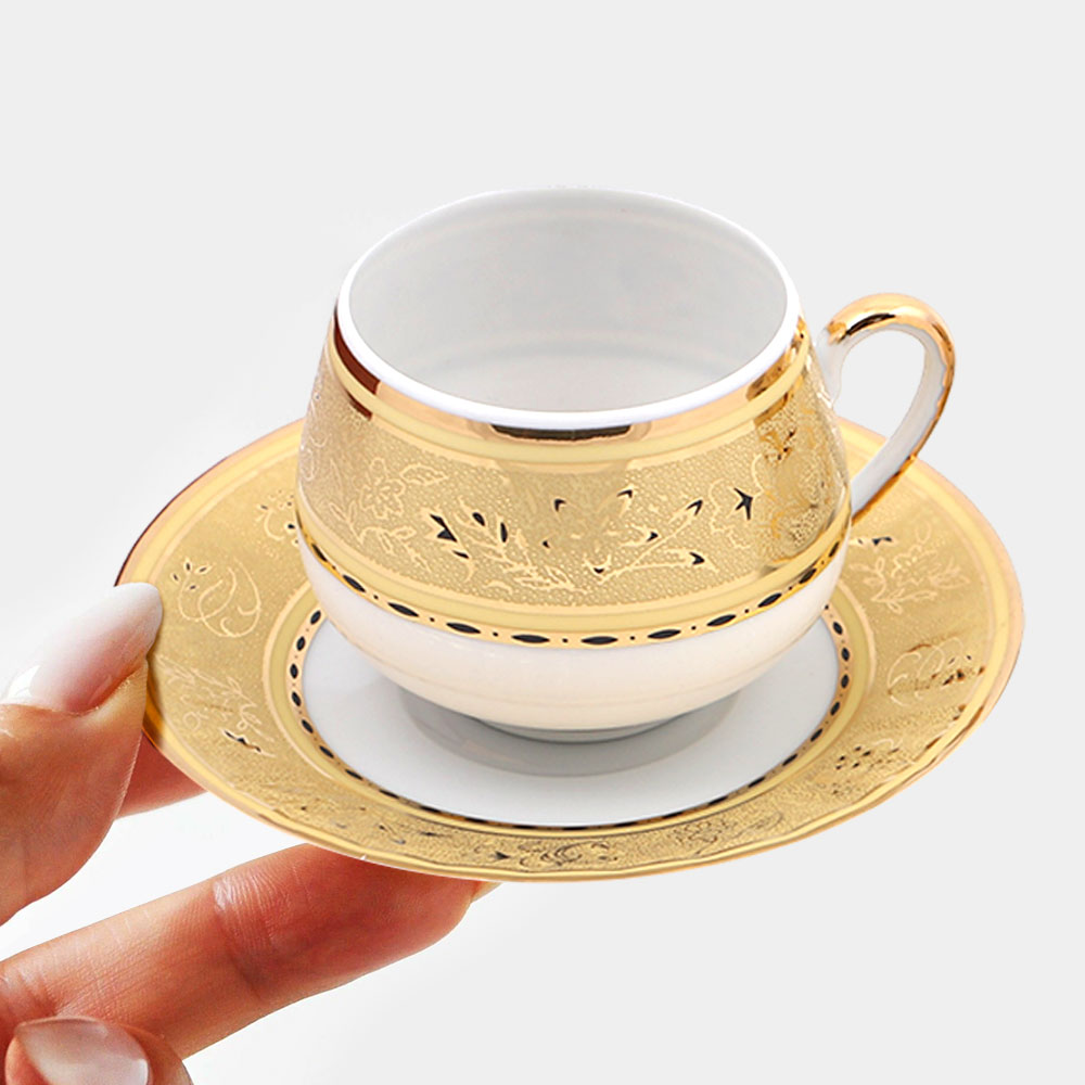 Подарите себе и близким моменты настоящего удовольствия с этим великолепным кофейным набором. Пусть каждое утро начинается с эстетического наслаждения и вкуса, достойного королевского двора.