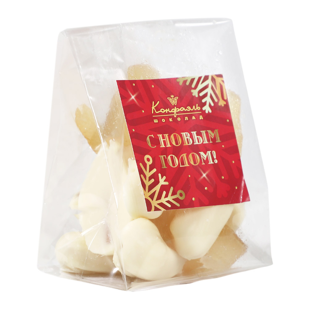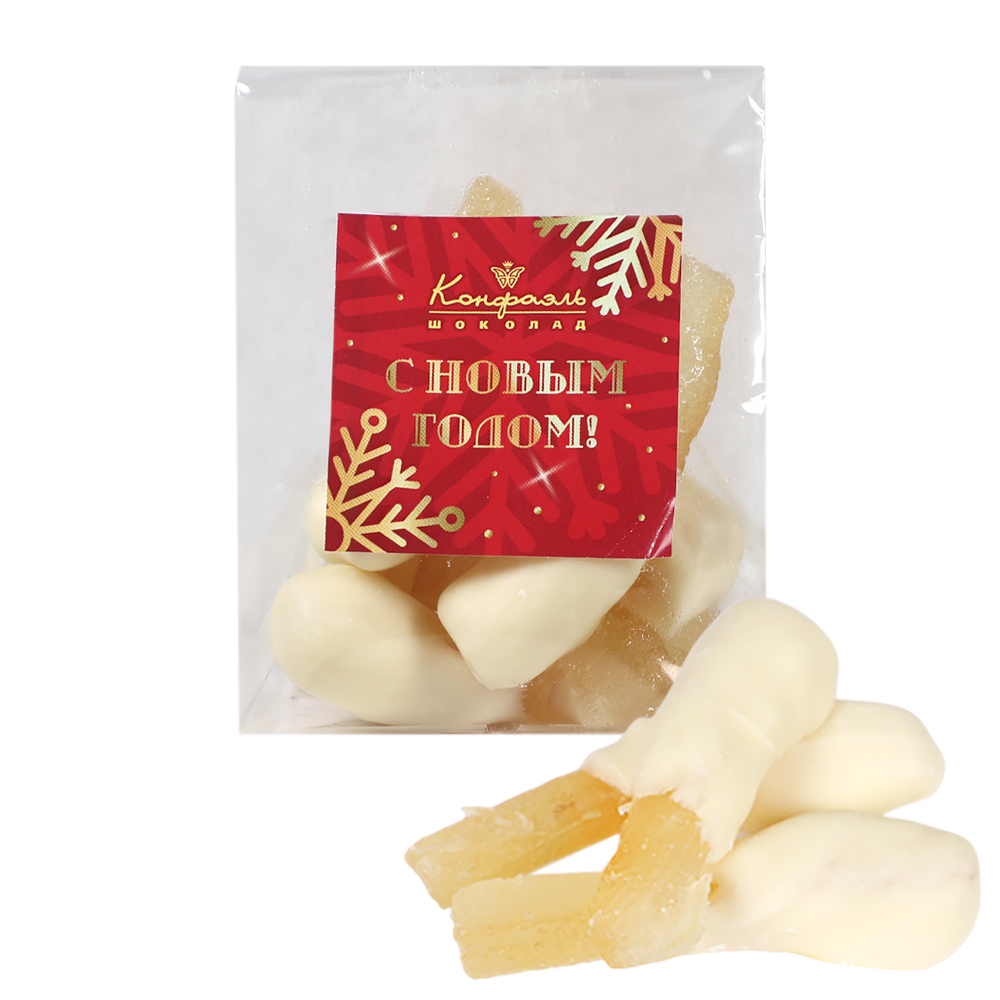 «Любимый вкус» цукаты лимонные корочки в белом шоколаде 50г (красное новогоднее оформление)