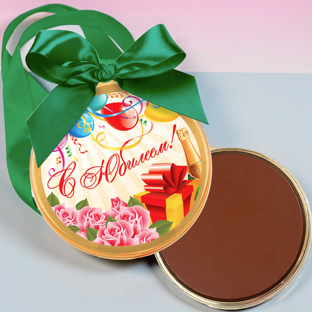 Шоколадная медаль «С юбилеем!» — тот обязательный минимум подарка, который порадует юбиляра не только вниманием, но и превосходным вкусом молочного шоколада.