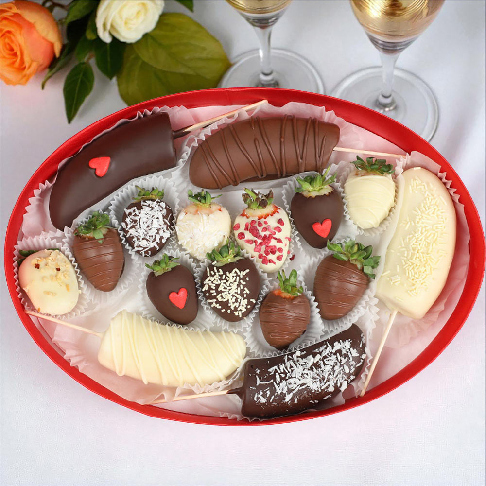 Конфеты глазированные "Клубника в шоколаде", "Банан в шоколаде" с декором
