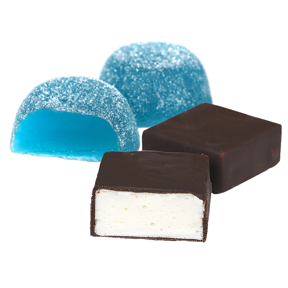 Мармелад желейный "Яблоко-фейхоа", конфеты глазированные горьким шоколадом "Суфле" (ванильное)
