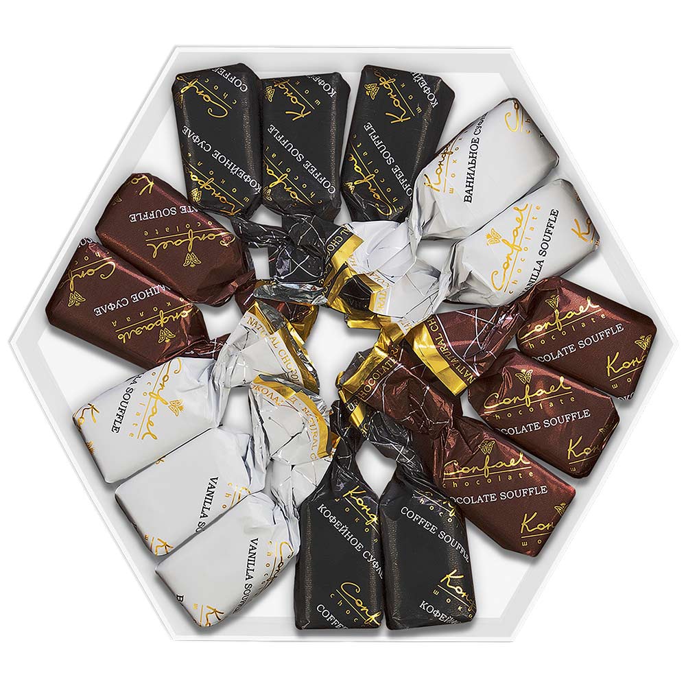 Набор суфле ванильного, кофейного и шоколадного в горьком шоколаде 105г (тюльпаны)