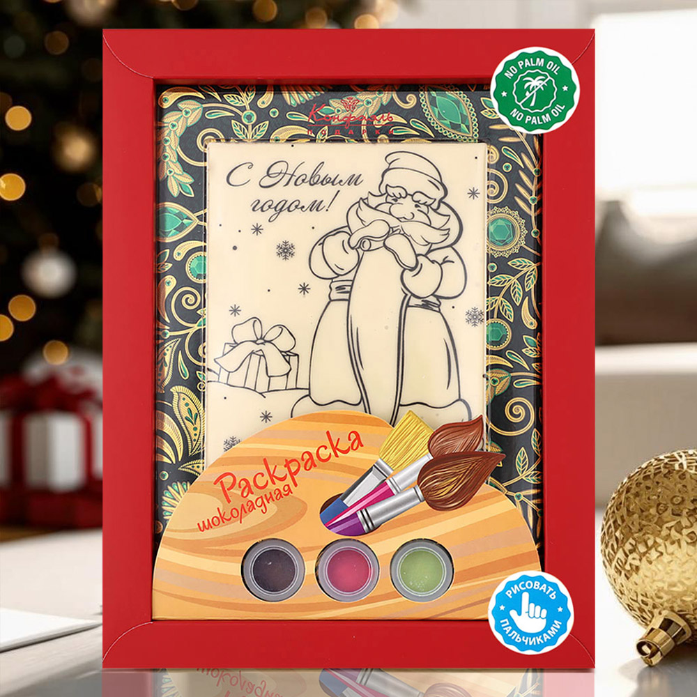 Представьте восторг ребёнка, когда вместо обычной раскраски он получает… съедобное чудо! Наша уникальная раскраска — очаровательный Дед Мороз из белоснежного шоколада — сочетает в себе и творчество, и сладкое удовольствие. Это именно тот сюрприз, который превращает обычный подарок в незабываемое праздничное приключение.