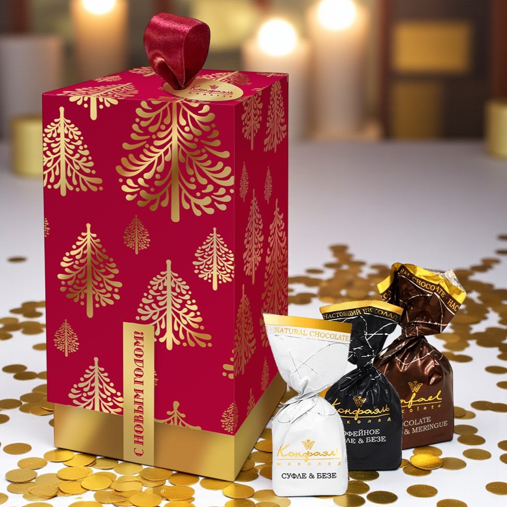 Состав: шоколадные массы – сахар, тертое какао, масло какао, какао-порошок, эмульгатор (лецитин соевый), натуральная ваниль; начинки – сахар, патока, молоко сгущенное (молоко цельное, сахар (сахароза, лактоза)), масло сладко-сливочное, белок яичный порошкообразный, какао-порошок, желирующие агенты (агар), консервант (сорбиновая кислота), регулятор кислотности (лимонная кислота), ароматизаторы. Продукция производится на предприятии, где используются арахис, кунжут, орехи, яичные и молочные продукты, злаки, содержащие глютен.