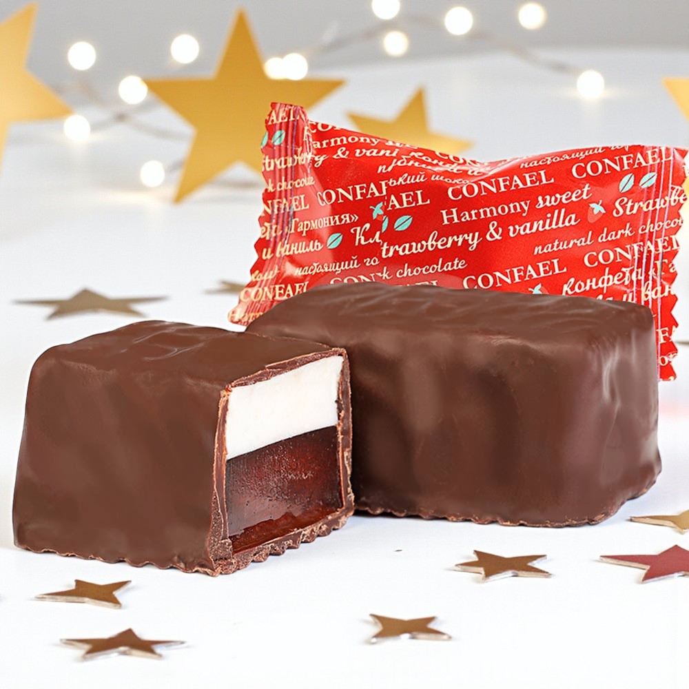 Конфеты «Комбинированные» в горьком шоколаде (клубника и ваниль)