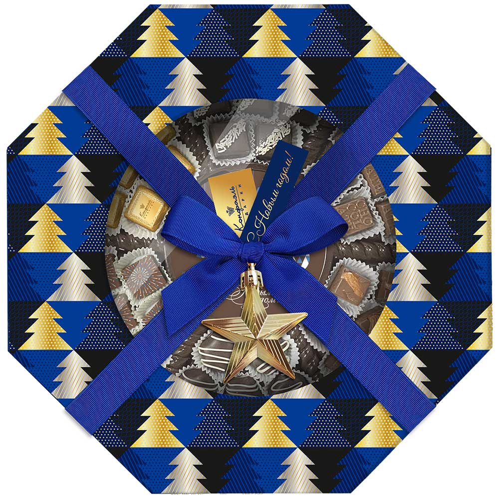 Состав: шоколадные массы – сахар, масло какао, молоко цельное сухое, сухое обезжиренное молоко, какао тертое, какао-порошок, сыворотка молочная сухая, пахта сухая, молочный жир, паста ореховая из ядер фундука, эмульгаторы (соевый лецитин, Е476), соль, натуральная ваниль, ароматизаторы; начинки – сахар, патока, белок яичный порошкообразный, молоко сухое, масла растительные рафинированные дезодорированные (подсолнечное, рапсовое, оливковое; масло сладко-сливочное, молоко сухое обезжиренное), молоко сгущенное (молоко цельное, сахар (сахароза, лактоза)), жир специального назначения (масло ши, рапсовое масло, соевое масло, антиокислитель (лимонная кислота)), молоко сухое цельное, молоко сухое обезжиренное, белый шоколад (сахар, масло какао, сухое обезжиренное молоко, сухое цельное молоко, эмульгатор (лецитин соевый), экстракт ванили), какао тертое, какао масло, клубника сушеная, кумкват сушеный, цукаты лимонных корочек, папайя сушеная, ананас сушеный, финики, чернослив, абрикос сушеный, ядра орехов фундука, ядра орехов миндаля, вафельная крошка (мука пшеничная х/п первого сорта, сахар, масло кокосовое рафинированное дезодорированное, эмульгатор( лецитин соевый), пшеничные волокна (клетчатка), ароматизатор),стабилизатор (мальтодекстрин), желирующий агент (агар), желатин говяжий, коньяк (дистиллят коньячный, вода, сахар, пищевой краситель (сахарный колер)), консервант (сорбиновая кислота), регулятор кислотности (лимонная кислота), эмульгаторы (лецитин соевый, Е471), ароматизаторы, пищевые красители (куркумин, медные комплексы хлорофиллов и хлорофиллинов); декор – пищевые красители (Е132, Е172, Е171, куркумин, красный свекольный).