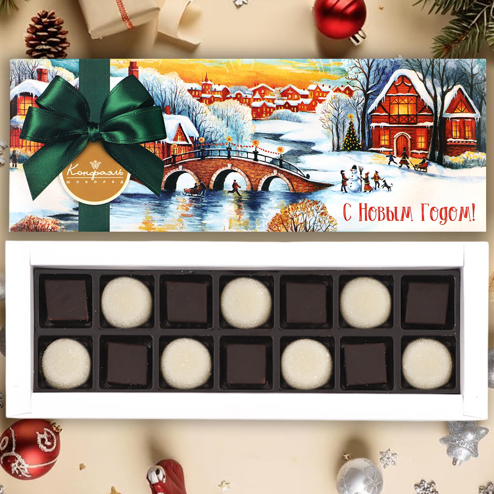 Состав: шоколадная масса -сахар, какао тертое, масло какао, какао-порошок, эмульгаторы (соевый лецитин, Е476); начинки - сахар, патока, молоко сгущенное (молоко цельное, сахар (сахароза, лактоза)), масло сладко-сливочное, белок яичный, желирующий агент (агар), желатин говяжий, регулятор кислотности (кислота лимонная), консервант (сорбиновая кислота), эмульгатор (Е471), экстракт ванили, ароматизаторы, пищевой краситель (Е171).