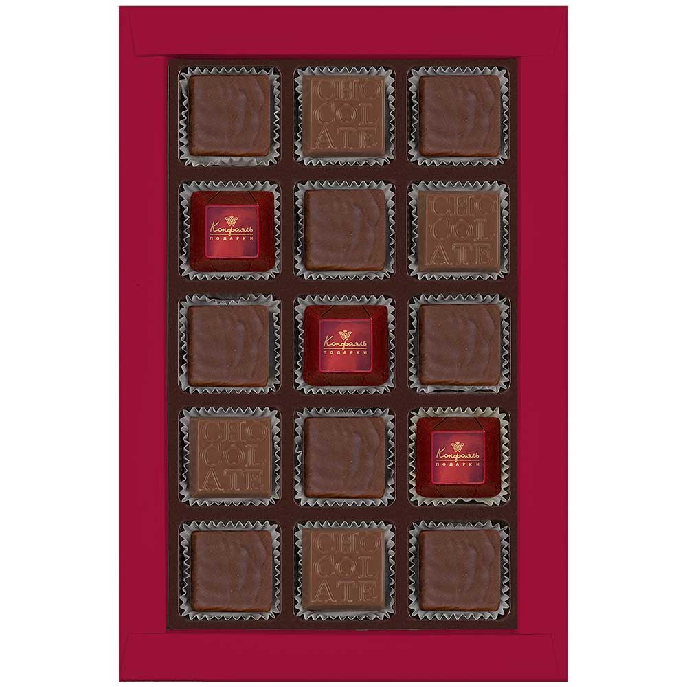Шоколадные конфеты «Ассорти» со сливочными и кремовой начинками, конфеты «Суфле» в горьком шоколаде со вкусом Просекко Розе