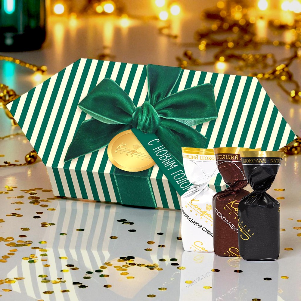 Состав: шоколадная масса – сахар, тертое какао, масло какао, какао-порошок, эмульгатор (лецитин соевый), натуральная ваниль; начинки – сахар, патока, молоко сгущенное (молоко цельное, сахар (сахароза, лактоза)), масло сладко-сливочное, какао-порошок, желирующий агент (агар), яичный белок, регулятор кислотности (лимонная кислота), консервант (сорбиновая кислота), эмульгаторы (Е471), ароматизаторы, натуральный пищевой краситель («сахарный колер»); натуральный экстракт ванили, натуральный экстракт кофе. Продукция производится на предприятии, где используются арахис, кунжут, орехи, яичные и молочные продукты, злаки, содержащие глютен.