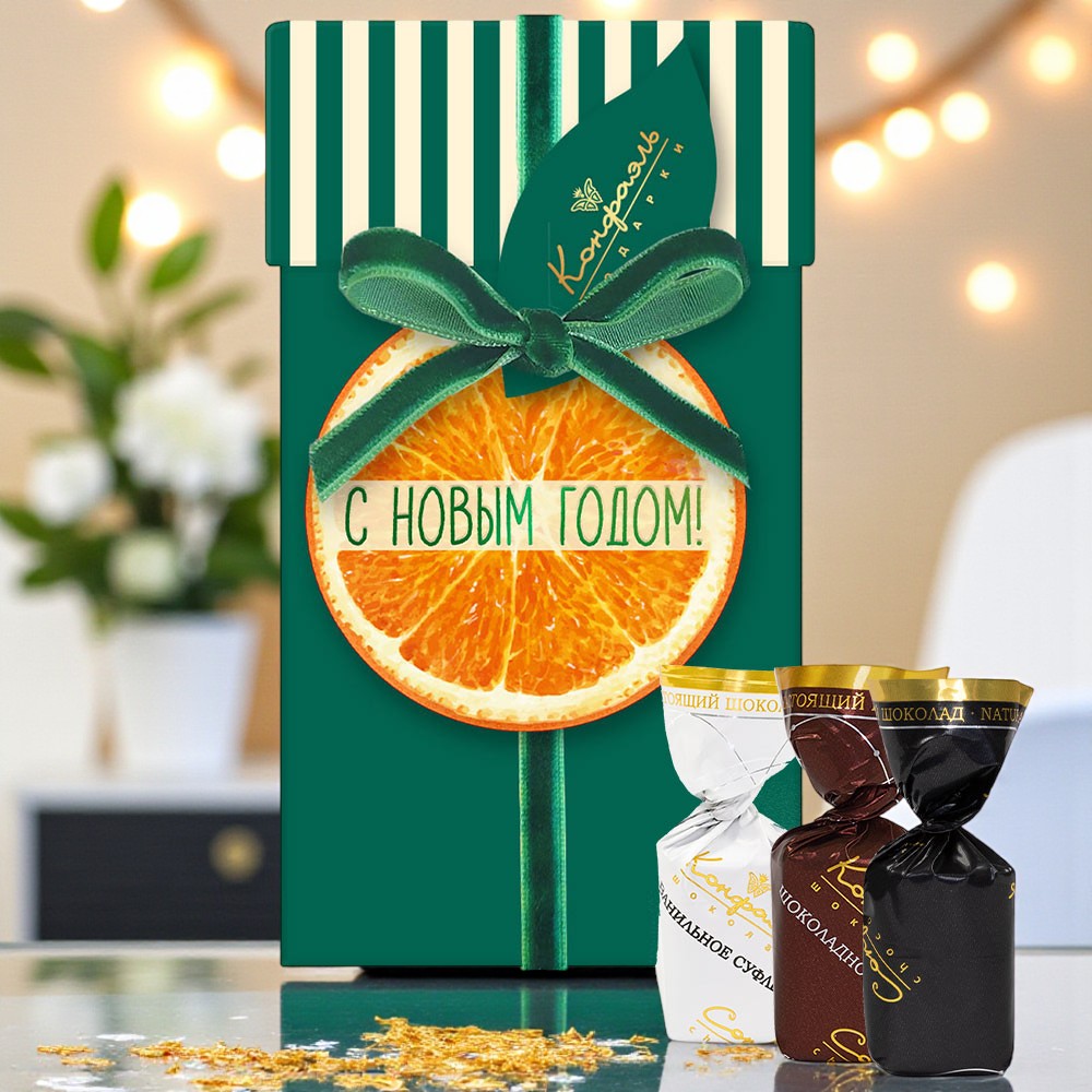 Состав: шоколадная масса – сахар, тертое какао, масло какао, какао-порошок, эмульгатор (лецитин соевый), натуральная ваниль; начинки - сахар, патока, молоко сгущенное (молоко цельное, сахар (сахароза, лактоза)), масло сладко-сливочное, какао-порошок, желирующий агент (агар), яичный белок, регулятор кислотности (лимонная кислота), консервант (сорбиновая кислота), эмульгаторы (Е471), ароматизаторы, натуральный пищевой краситель («сахарный колер»); натуральный экстракт ванили, натуральный экстракт кофе. Продукция производится на предприятии, где используются арахис, кунжут, орехи, яичные и молочные продукты, злаки, содержащие глютен