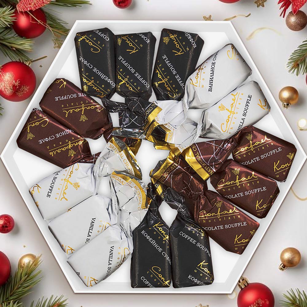 Новогодний набор суфле в шоколаде (ванильное, шоколадное, кофейное) 105г (Санта)