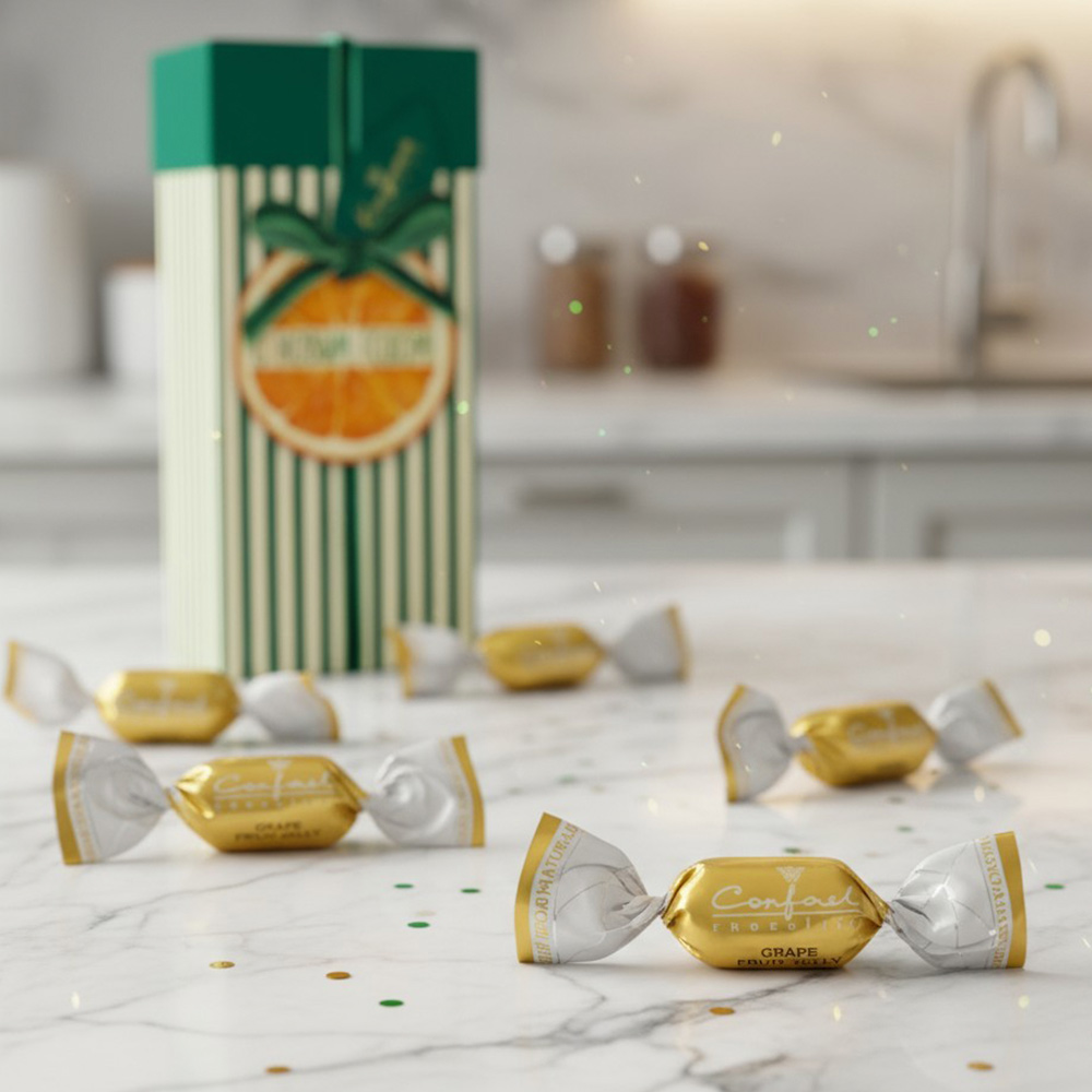 Состав: шоколадная масса – сахар, тертое какао, масло какао, какао-порошок, эмульгатор (лецитин соевый), натуральная ваниль; начинка – сахар, патока, концентрированные натуральные сок (виноградный), желирующие агенты (агар, желатин говяжий), регулятор кислотности (лимонная кислота), ароматизаторы.