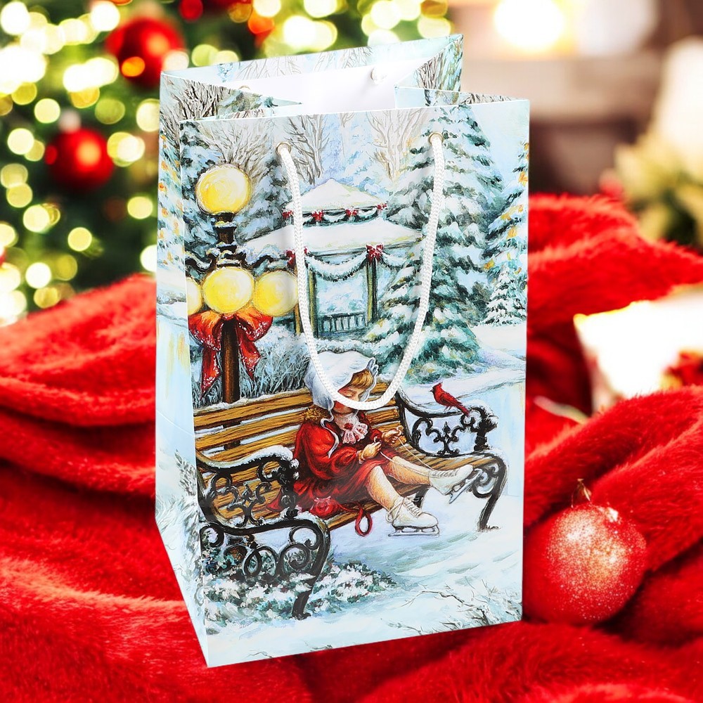 Представляем уникальный новогодний подарочный пакет средней величины с очаровательным дизайном «Девочка на коньках». Этот волшебный аксессуар подарит вашим близким яркие эмоции и праздничное настроение!