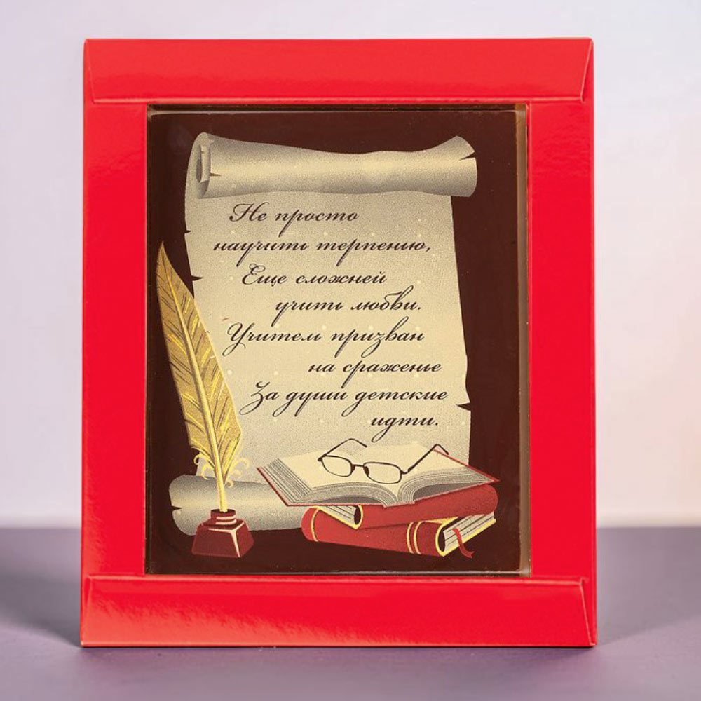 Самым трогательным презентом для педагога будут добрые слова на открытке из шоколада с достойным дизайном декора и упаковки.