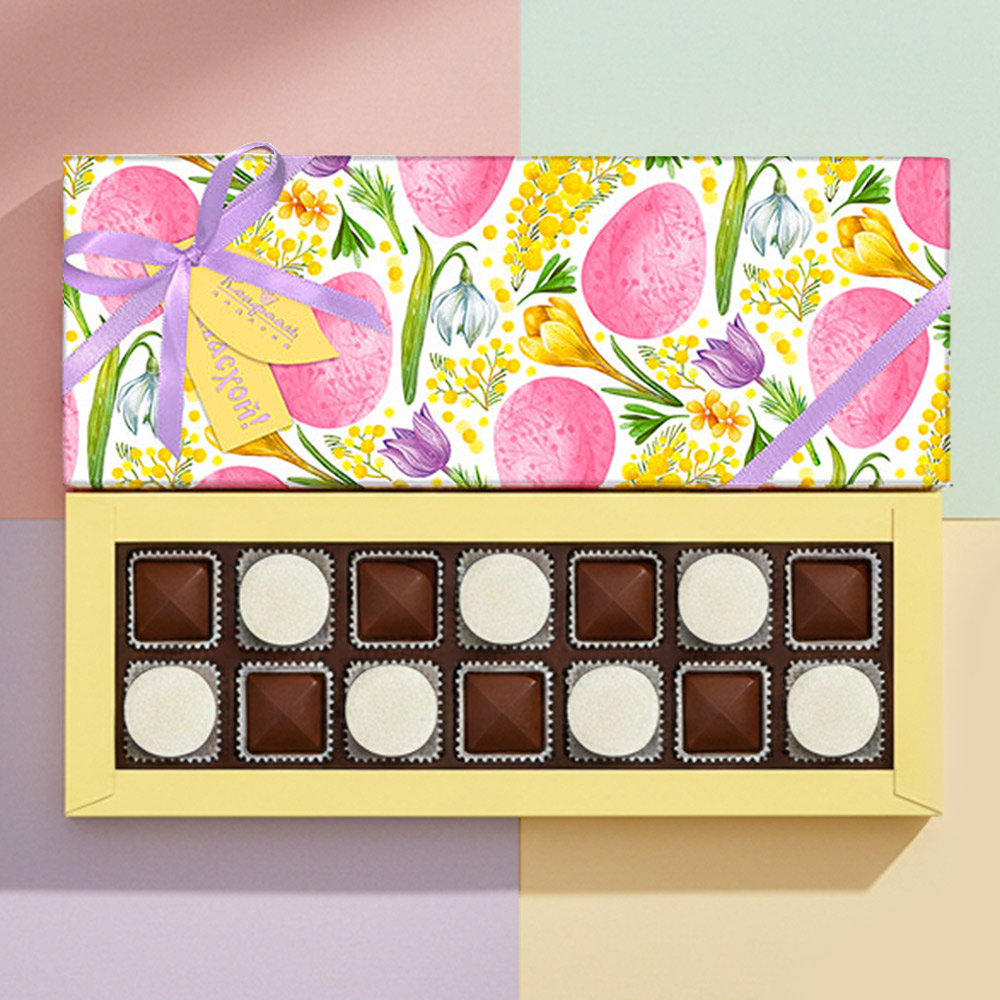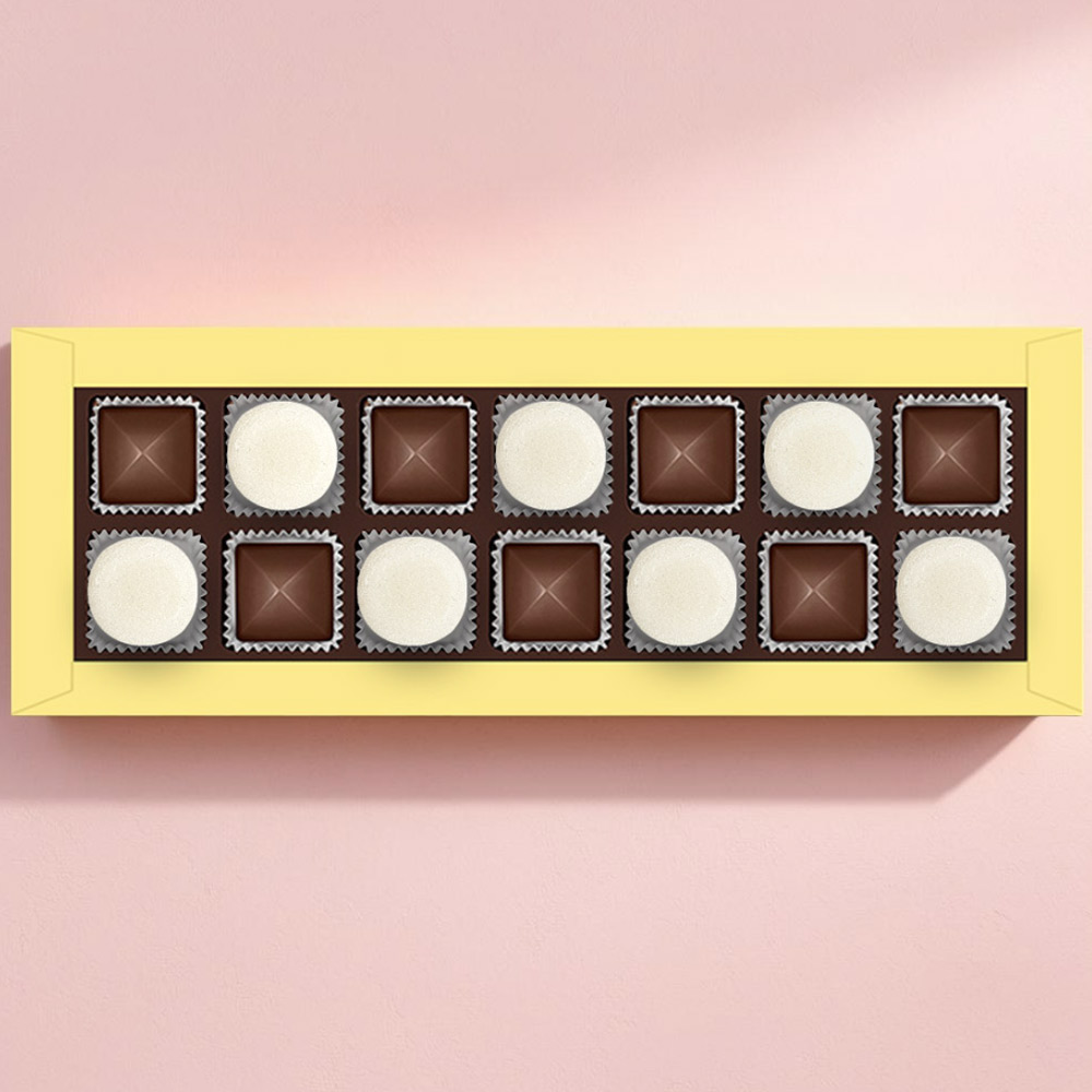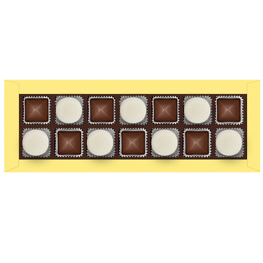 Состав: шоколадные массы – сахар, тертое какао, какао-порошок, масло какао, сыворотка молочная сухая, сухое цельное молоко, молочный жир, паста ореховая из ядер фундука, эмульгаторы (лецитин соевый, Е476), соль, ароматизатор; начинки – сахар, патока крахмальная карамельная, масло какао, тертое какао, молоко сгущенное (молоко цельное, сахар (сахароза, лактоза)), стабилизатор (мальтодекстрин), желирующий агент (агар), желатин говяжий, коньяк (дистиллят коньячный, вода, сахар, пищевой краситель «Сахарный колер»), спирт этиловый ректификованный, консервант (сорбиновая кислота), регулятор кислотности (лимонная кислота), эмульгаторы (лецитин соевый, Е471), ароматизаторы, пищевые красители (Е171). Внимание! Продукция производится на предприятии, где используются арахис, кунжут, орехи, яичные и молочные продукты, злаки, содержащие глютен.