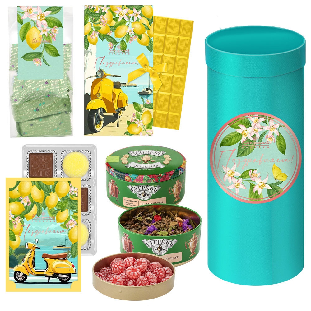 Подарочный набор: шоколад, мармелад, глазированные конфеты, чай 380г
