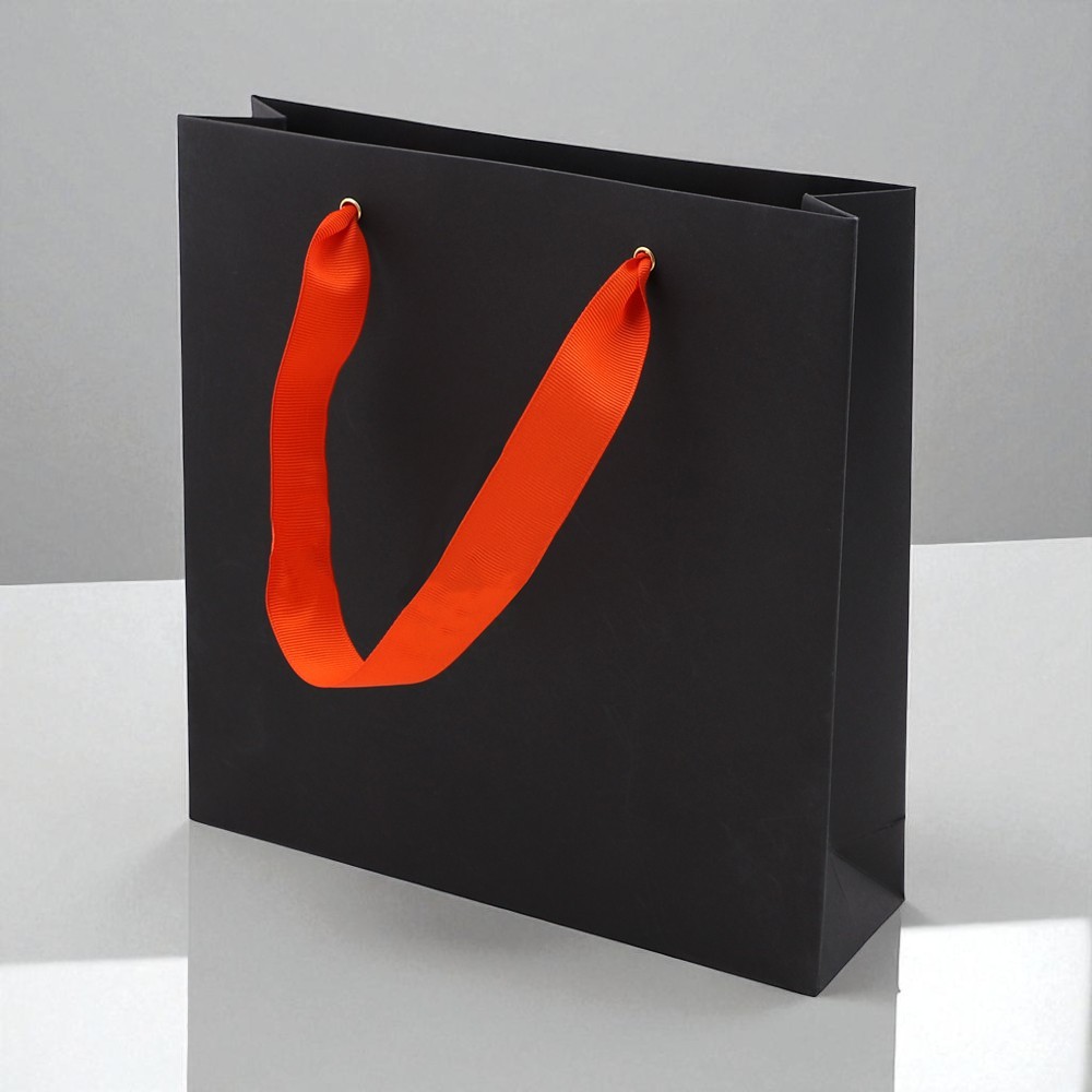 Черный подарочный пакет с эффектными оранжевыми ручками – это решение для сильных и уверенных в себе мужчин, руководителей и уважаемых партнёров.