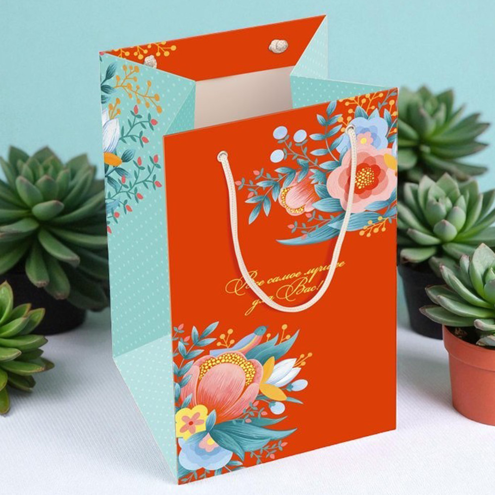 Пакет оранжево-голубой с цветами 30*18,5*16,5см