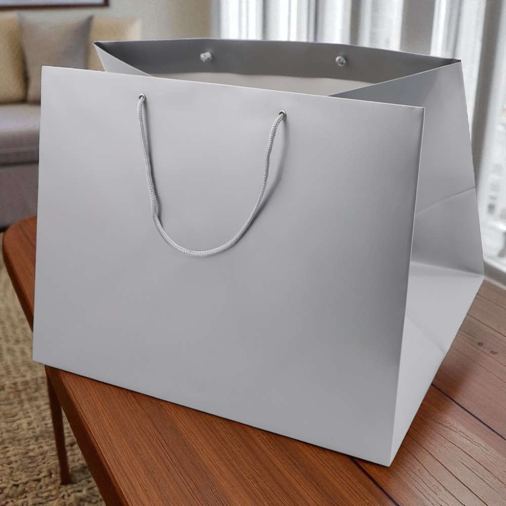 Представляем элегантный подарочный пакет с роскошным серебристым оттенком — настоящее украшение любого подарка!