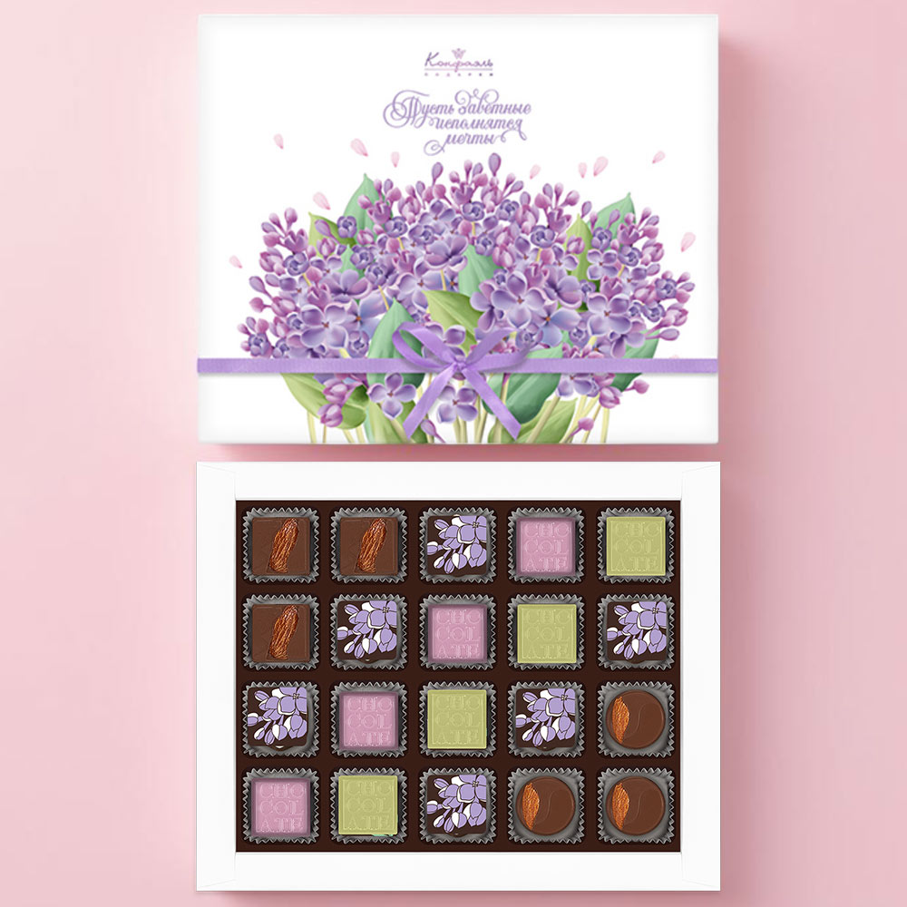 Шоколад молочный с миндалём, шоколадные конфеты «Ассорти» со сливочными начинками, с желейной начинкой и декором