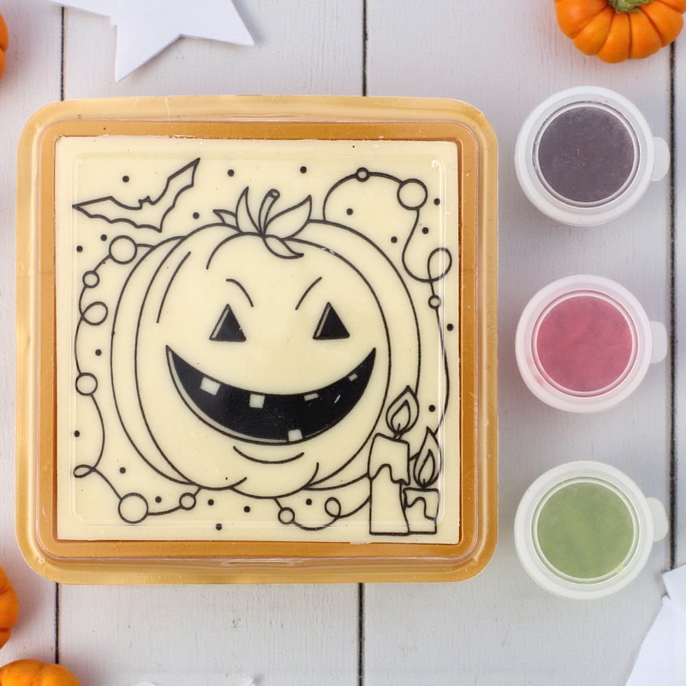 Набор шоколада: декорированное полотно из белого шоколада, цветная глазурь.