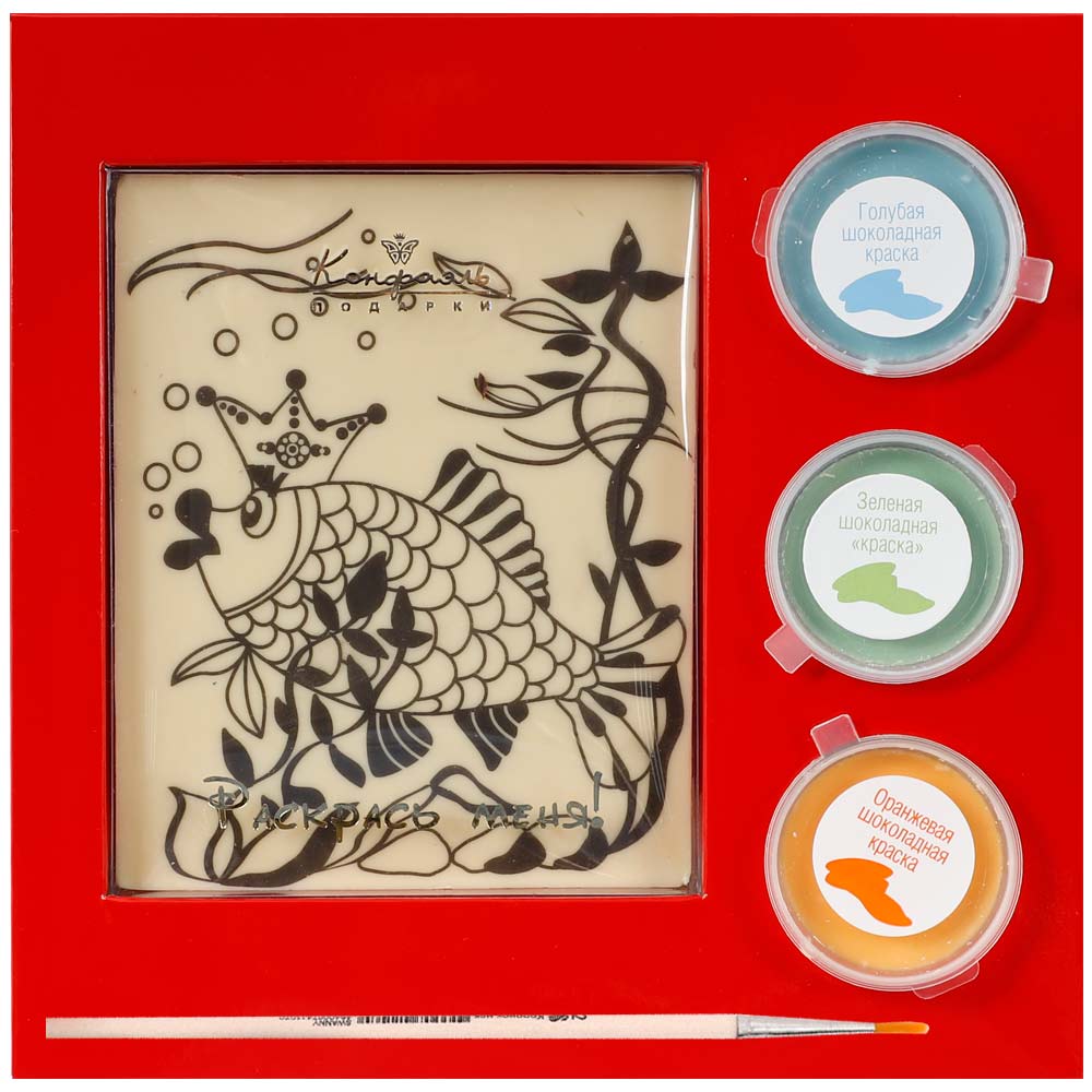 Кондитеры «Конфаэль» придумали оригинальный десерт для ребятишек - раскраску «Рыбка» из белого шоколада.