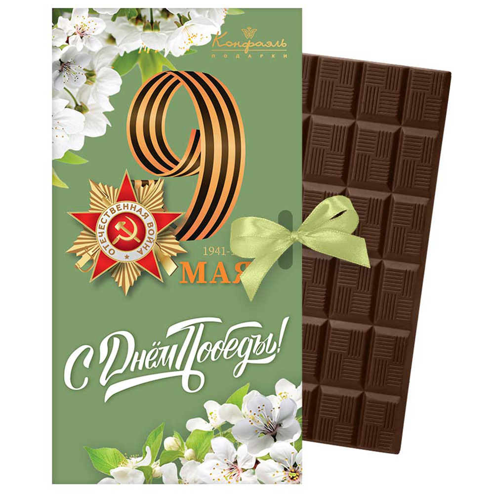 Удивите близких оригинальным подарком к 9 Мая — открыткой «С Днём Победы» из нежного молочного шоколада.
