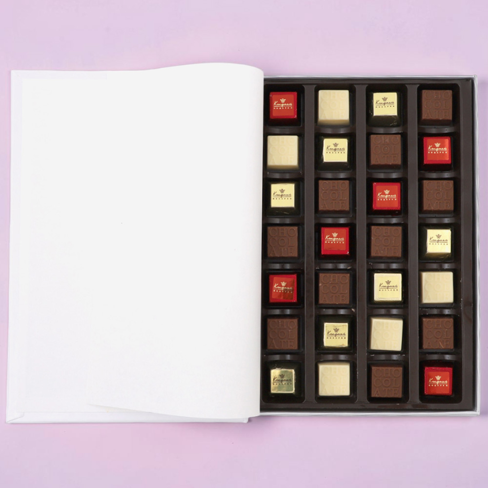 Cостав: шоколадные массы – сахар, масло какао, молоко цельное сухое, сухое обезжиренное молоко, какао тертое, какао-порошок, сыворотка молочная сухая, пахта сухая, молочный жир, паста ореховая из ядер фундука, эмульгаторы (соевый лецитин, Е476), соль, натуральная ваниль, ароматизаторы; начинки – сахар, патока, какао-масло, какао тертое, молоко сгущенное (молоко цельное, сахар (сахароза, лактоза)), жир специального назначения (масло ши, рапсовое масло, соевое масло, антиокислитель (лимонная кислота)), молоко сухое цельное, молоко сухое обезжиренное, белый шоколад (сахар, масло какао, сухое обезжиренное молоко, сухое цельное молоко, эмульгатор (лецитин соевый), экстракт ванили), масла растительные рафинированные дезодорированные (подсолнечное, рапсовое, оливковое; масло сладко-сливочное, молоко сухое обезжиренное), стабилизатор (мальтодекстрин), коньяк (дистиллят коньячный, вода, сахар, пищевой краситель (сахарный колер)), консервант (сорбиновая кислота), регулятор кислотности (лимонная кислота), эмульгаторы (лецитин соевый, Е471), ароматизаторы, пищевые красители (сахарный колер)