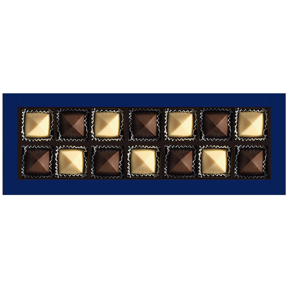 Состав: шоколадные массы – сахар, масло какао, молоко цельное сухое, сухое обезжиренное молоко, пахта сухая, какао тертое, какао-порошок, сыворотка молочная сухая, молочный жир, паста ореховая из ядер фундука, эмульгатор (соевый лецитин,Е476), соль, натуральная ваниль, ароматизаторы; начинки – сахар, патока, какао-масло, какао тертое, молоко сгущенное (молоко цельное, сахар (сахароза, лактоза)), масла растительные рафинированные дезодорированные (подсолнечное, рапсовое, оливковое; масло сладко-сливочное, молоко сухое обезжиренное), жир специального назначения (масло ши, рапсовое масло, соевое масло, антиокислитель( лимонная кислота)), молоко сухое цельное, молоко сухое обезжиренное, белый шоколад (сахар, масло какао, сухое обезжиренное молоко, сухое цельное молоко, эмульгатор (лецитин соевый), экстракт ванили), стабилизатор (мальтодекстрин), коньяк (дистиллят коньячный, вода, сахар, пищевой краситель (сахарный колер)), консервант (сорбиновая кислота), регулятор кислотности (лимонная кислота), эмульгаторы (лецитин соевый, Е471), ароматизаторы.Продукция производится на предприятии, где используются арахис, кунжут, орехи, яичные и молочные продукты, злаки, содержащие глютен.