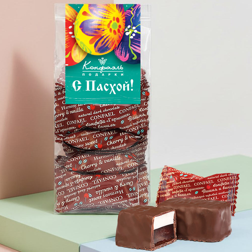 "С Пасхой" набор двуслойных конфет суфле + вишневый мармелад в шоколаде