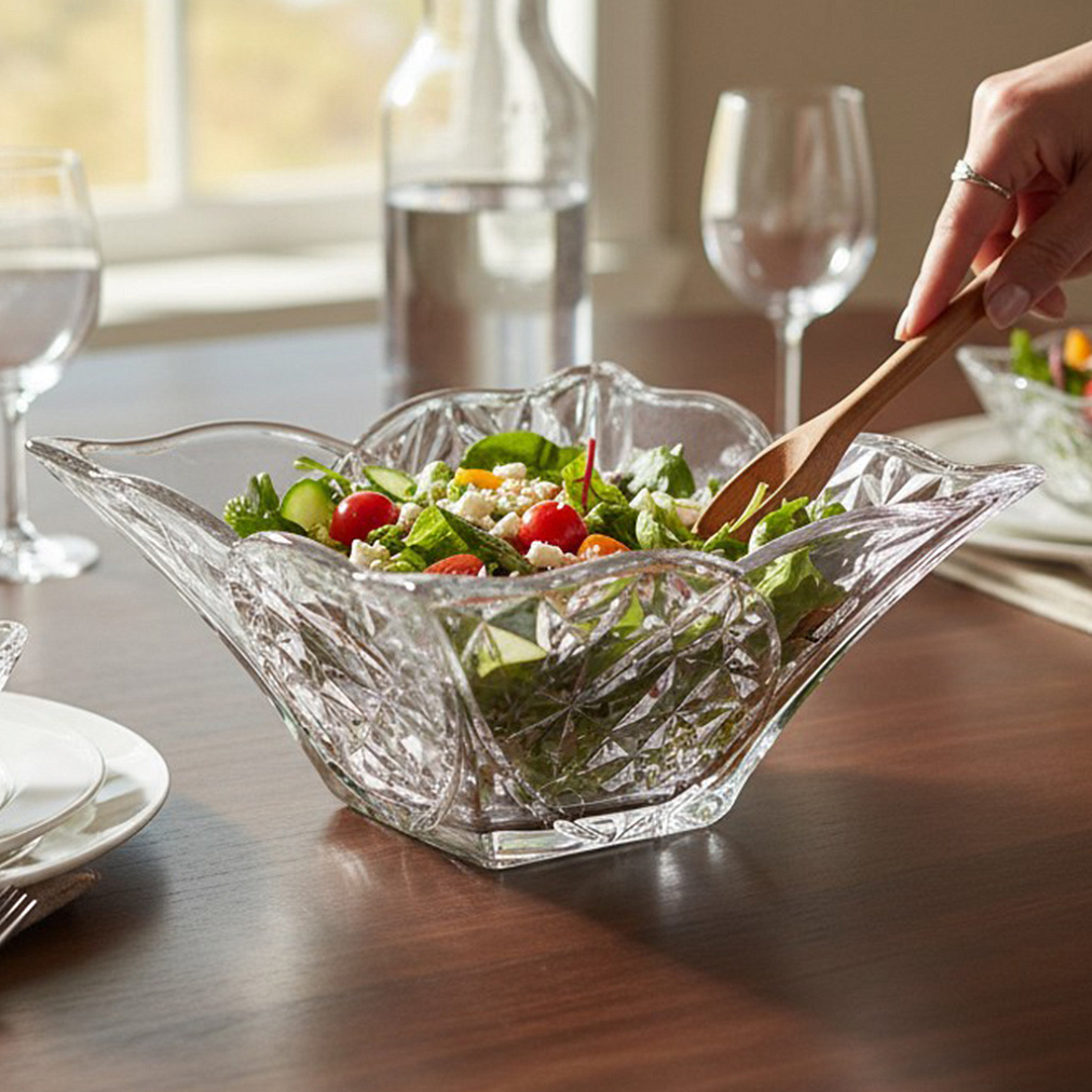 ✔Оптимальные размеры. Габариты 25×25×13 см обеспечивают вместительность — в салатнике удобно подавать салаты, закуски, фрукты или десерты на 4–6 персон.