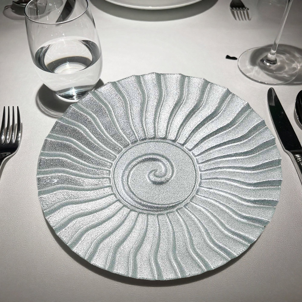Сервировочное блюдо из стекла с серебристым декором: элегантность на Вашем столе.