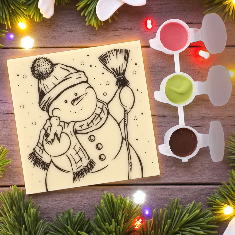 Волшебство зимы: Раскраска из белого шоколада «Снеговик»