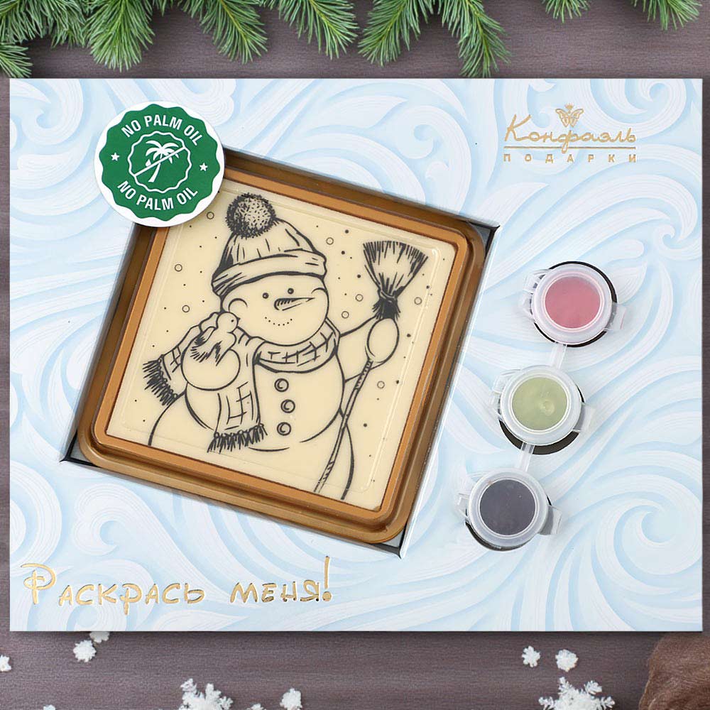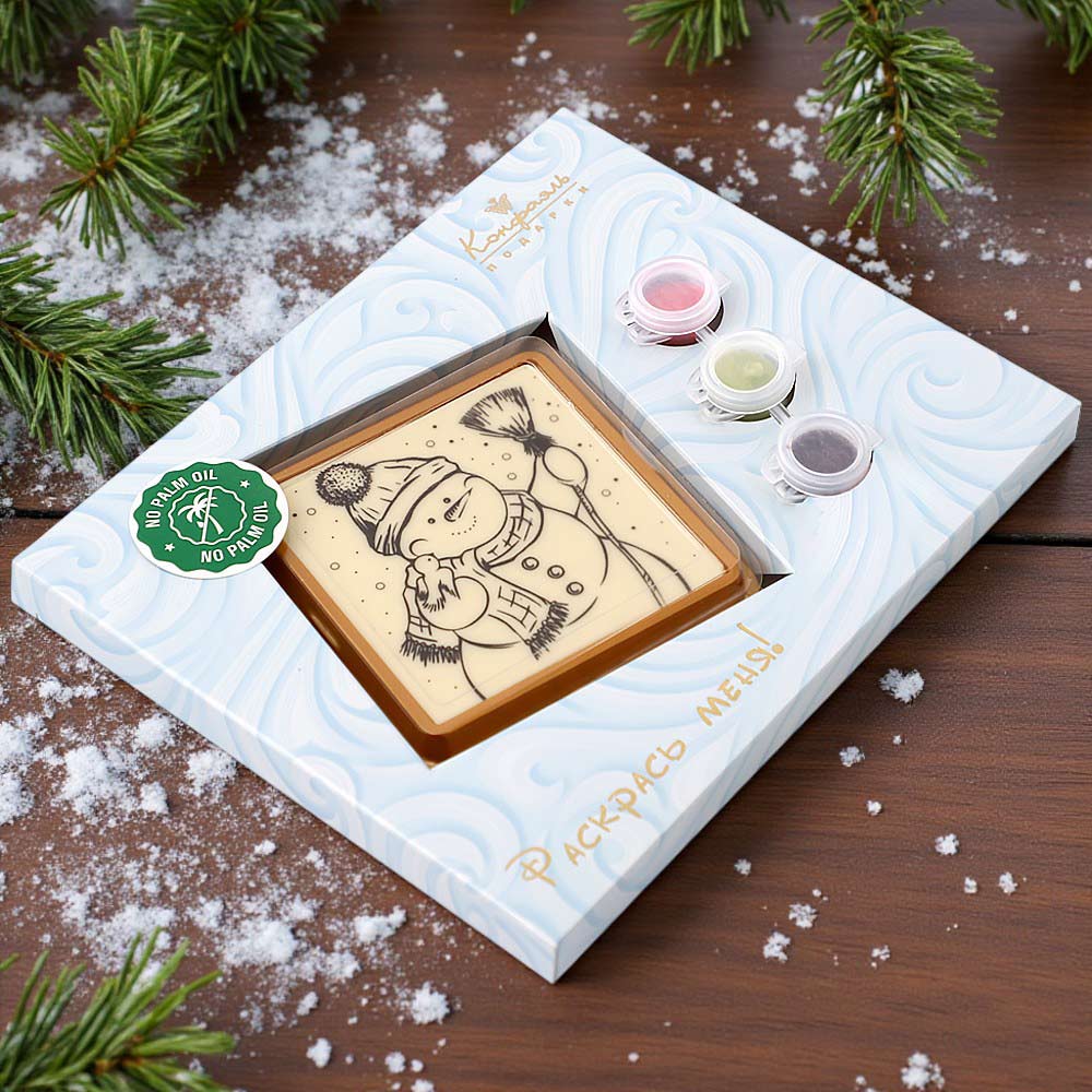 Праздничное лакомство для всей семьи – уникальная шоколадная раскраска «Снеговик», которая превратит чаепитие в настоящее творчество. Подарите себе и детям незабываемые моменты радости и волшебства!