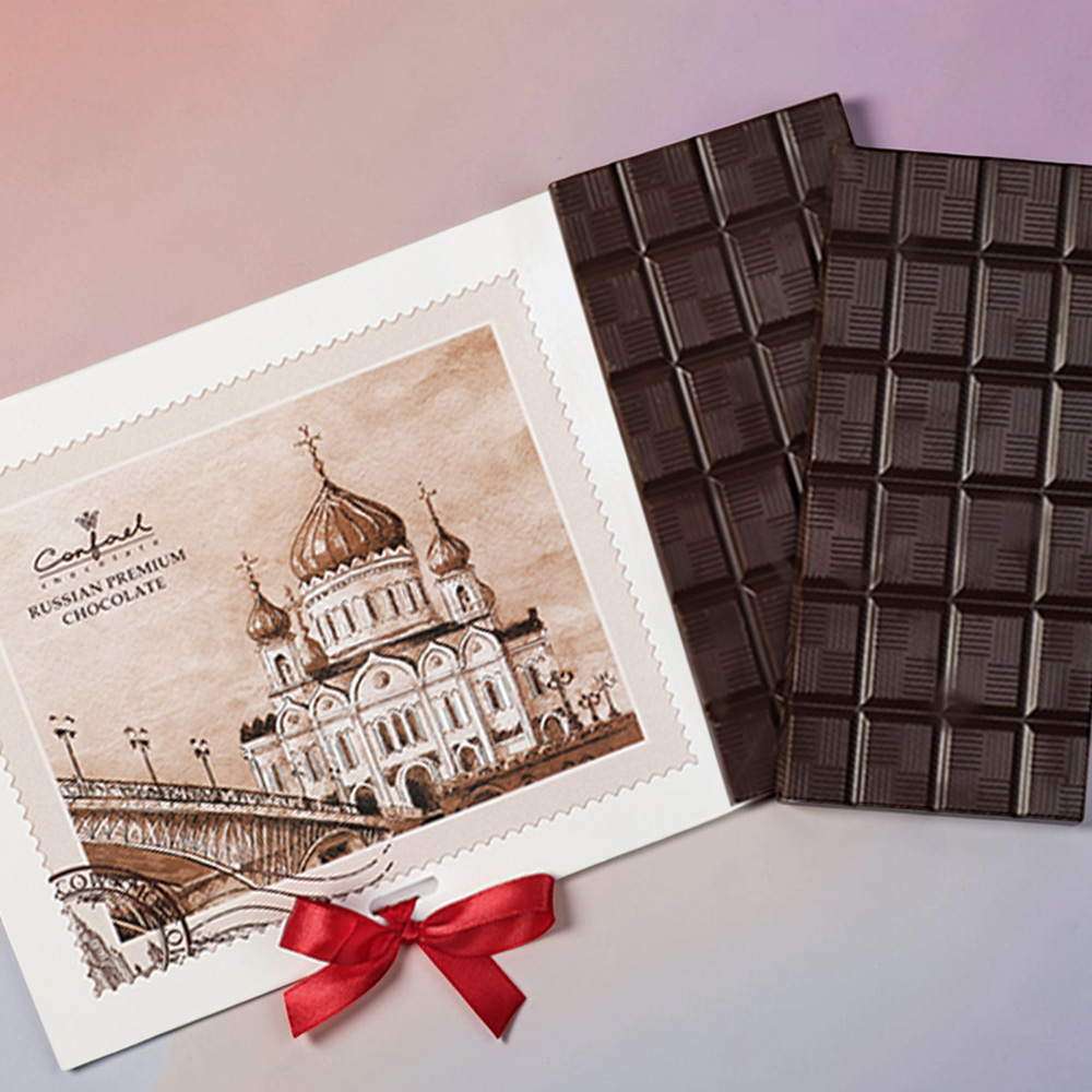 "Соборы Москвы" открытка шоколад в ассортименте - "Храм Христа Спасителя" открытка горький шоколад