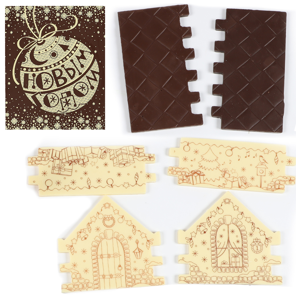Домик - пластины из молочного и белого шоколада c декором.