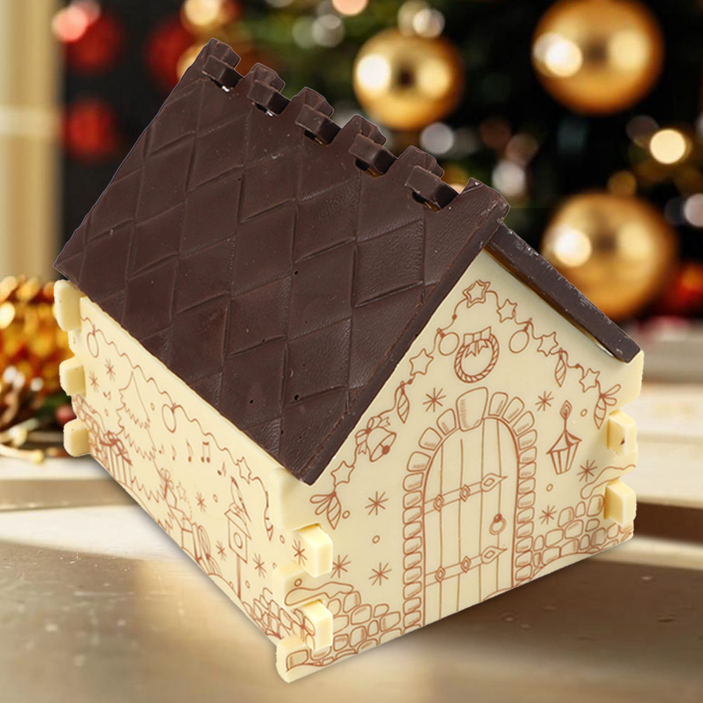 Домик - пластины из горького и белого шоколада c декором.