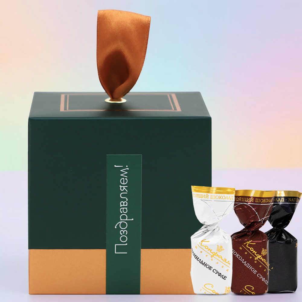 Представляем Вам уникальный продукт — мини-набор суфле в шоколаде в стильной зеленой упаковке. Этот деликатес идеально подойдет для тех, кто ценит настоящее удовольствие и любит наслаждаться каждым кусочком.