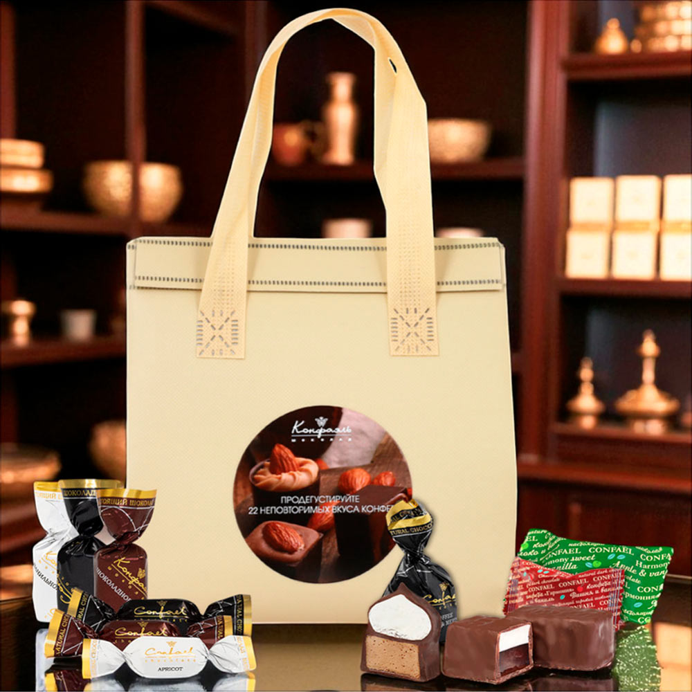 Представляем Вашему вниманию уникальную коллекцию конфет! Насладитесь роскошью вкусов, открыв нашу стильную сумку с сюрпризом внутри.