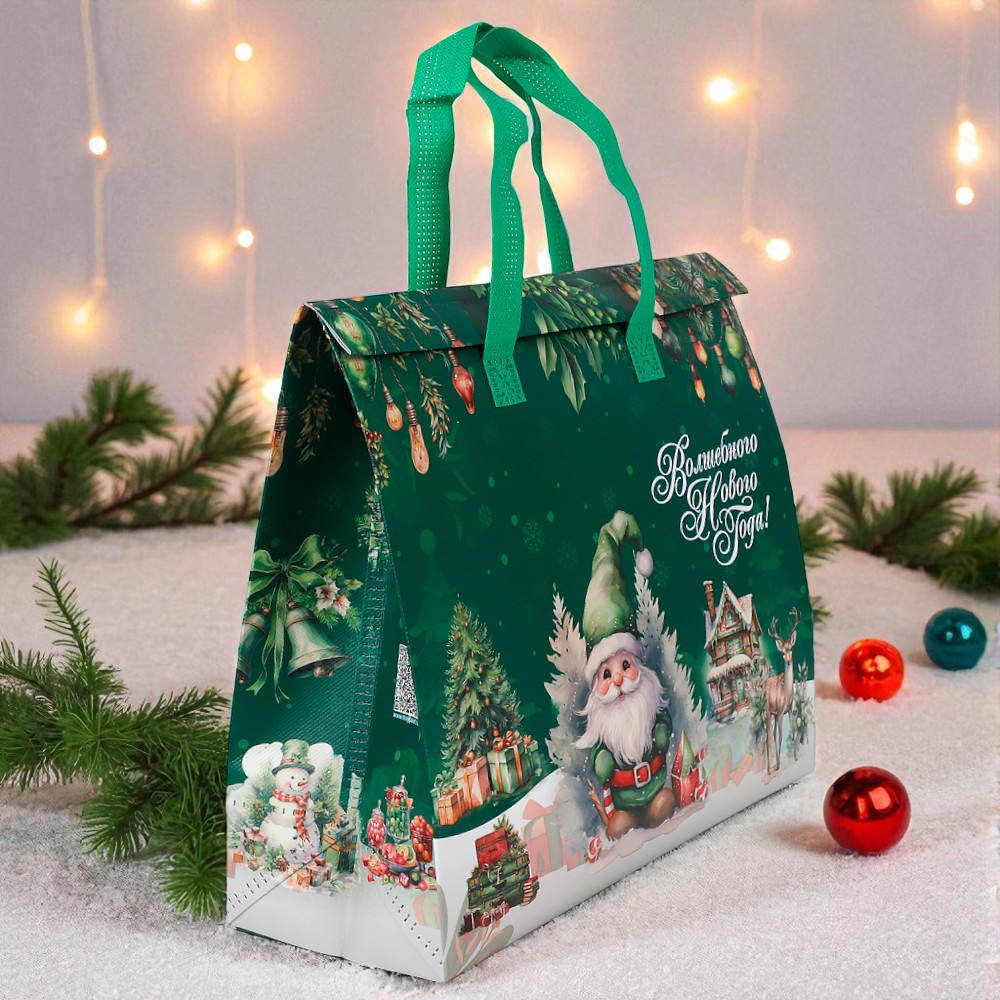 Термопакет зеленый "С Новым годом" 35х30х13 см (застежка липучка многоразовая)
