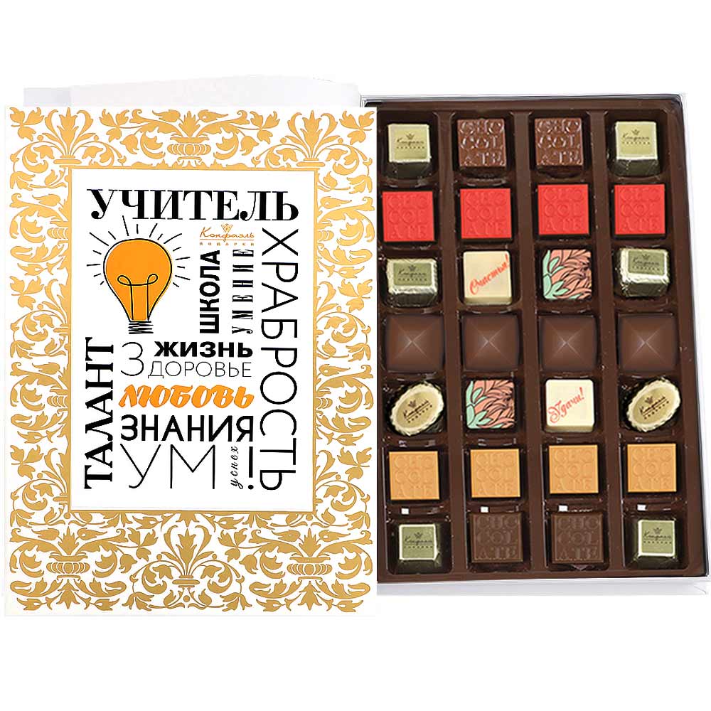 Не стоит расписывать формулы, у нас всё готово. Декоративный набор в виде книги - вот ответ на все вопросы! Шоколад придётся по вкусу даже самому строгому учителю.