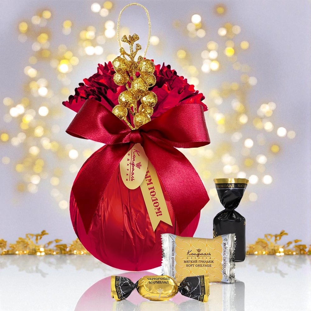 Откройте для себя неповторимый вкус праздника с нашими эксклюзивными ёлочными шарами! Внутри каждого шара — настоящая кондитерская симфония из трёх восхитительных лакомств, которые превратят обычный вечер в незабываемое гастрономическое путешествие.